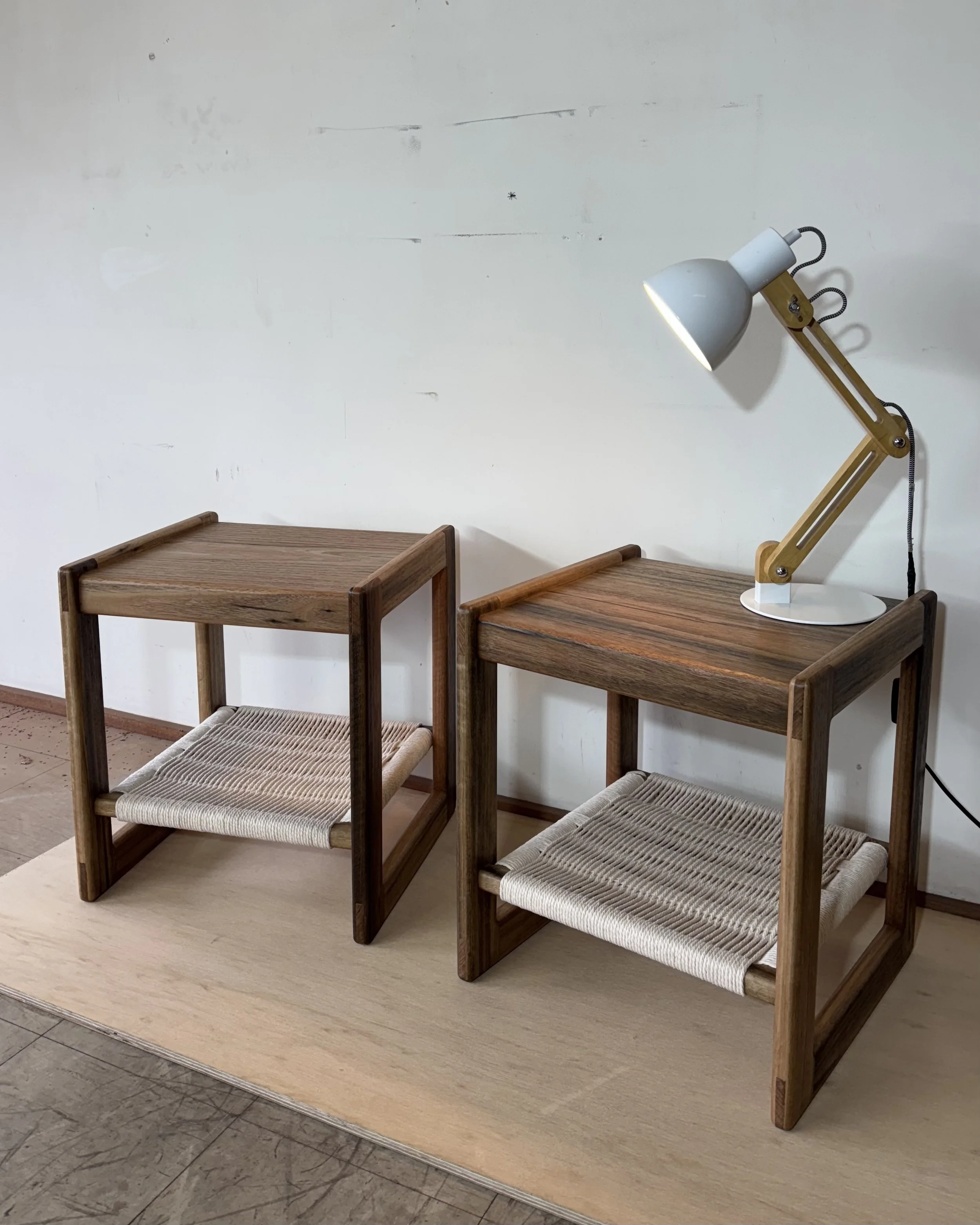 RECLAIMED ASH SIDE TABLES WITH HAND WOVEN SHELF